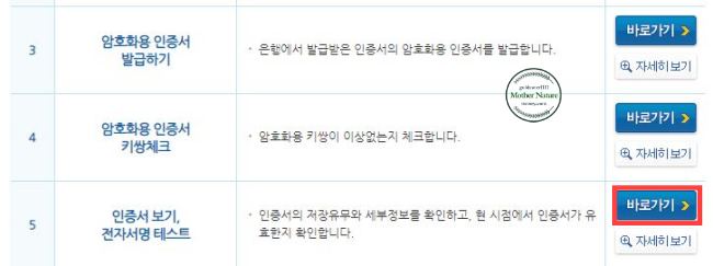 (9) 스크롤을 조금 내려보면 5번에 인증서 보기, 전자서명 테스트가 있습니다.
